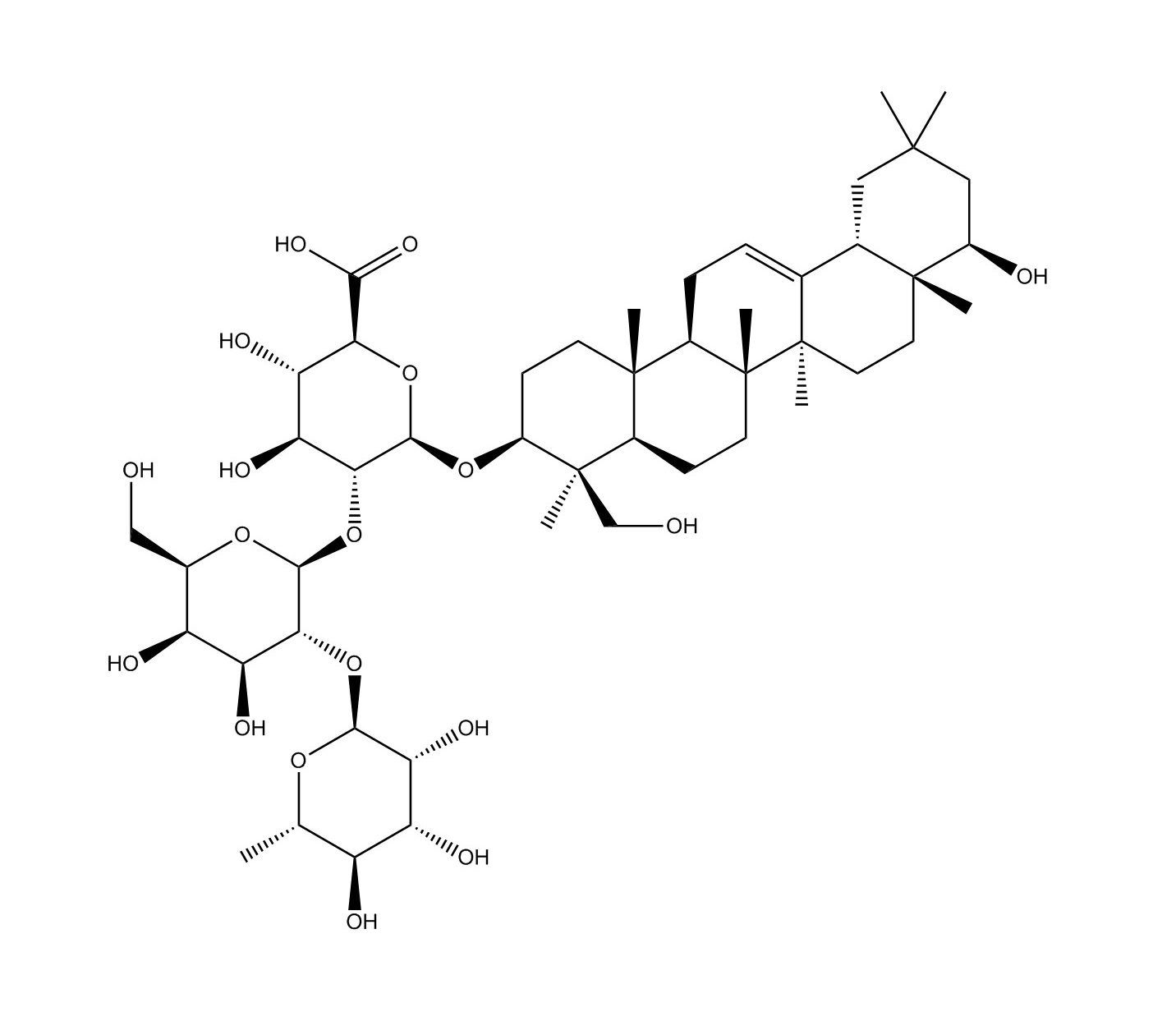 【英文別稱(chēng)】 β-D-Glucopyranosiduronic acid, (3β,4β,22β)-22,23-dihydroxyolean-12-en-3-yl O-6-deoxy-α-L-Mannopyranosyl-(1→2)-O-β-D-galactopyranosyl-(1→2)-
